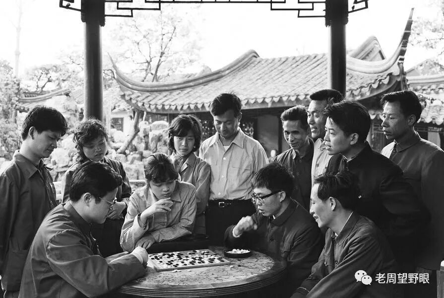 1980年陳祖德和聶衛平在蘇州拙政園對弈,觀棋者中一位為胡榮華