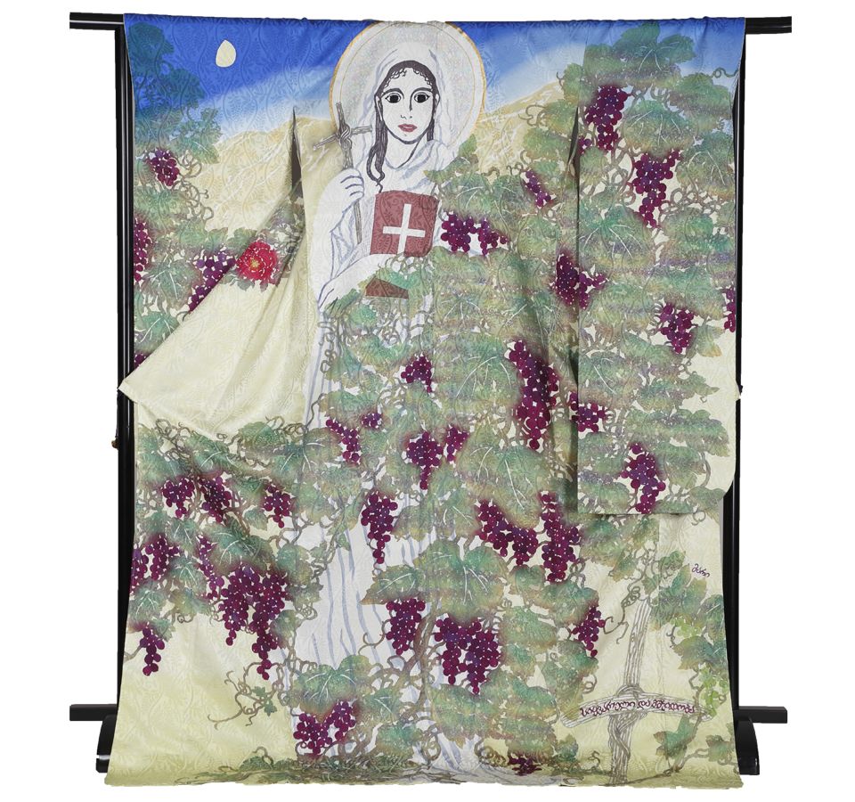 設計者將與法國波旁王朝頗有淵源的百合花,大膽地運用到整件和服上,展現法國的簡約美。
