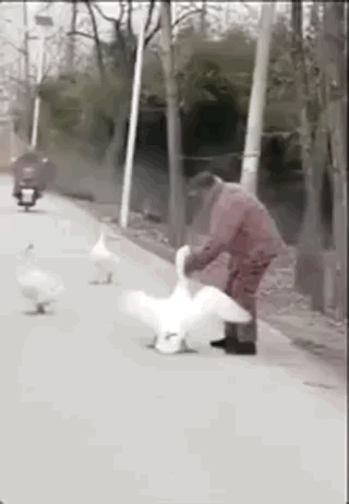 然而!大鵝的克星終於出現了!看啊,麵對瘋狂挑釁的大鵝,大爺抓住就是冷靜一拋。