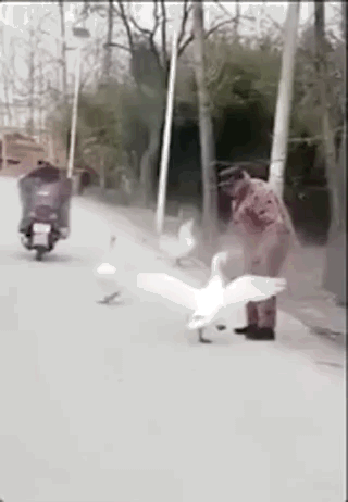 大鵝不服,繼續挑釁,大爺上去就是一頓打臉!