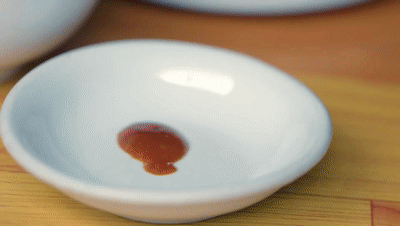 在小碟中放入香蔥、辣椒麵、折耳根,軟彈香滑的米粉,加上一勺秘製番茄醬拌勻,再喝上一口酸湯,棒極了!