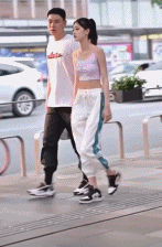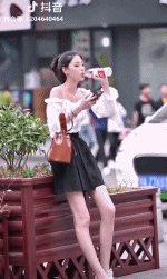 剛才往上提褲子,這就往下拽衣服,全方位照顧到