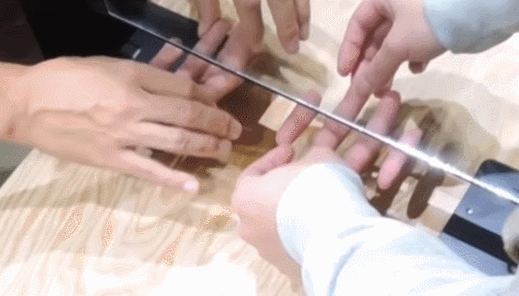 看了幕後,原來是利用鏡子,把手伸到鏡子下方,做上各種動作,輕輕鬆鬆達到了視錯覺的效果。