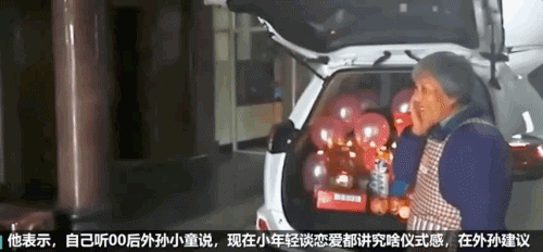 最近,浙江的一位大爺想給75歲的妻子過生日。大爺一輩子都不懂什麽叫浪漫,於是隻能向00後外孫請教。外孫拍著胸脯:“這我懂啊!年輕人都講究儀式感,所以我建議你給姥姥買一車(我愛吃的)零食。”大爺真的照做了,後備箱裝滿了各類(外孫建議采購)的零食,還用氣球和彩燈精心裝飾了一番,想要給老伴兒一個驚喜。他神秘兮兮地把老伴領進停車場,沒等說啥自己臉倒是先紅了。接著他打開了後備箱,老伴兒也被眼前的一幕感動到了。麵對這甜蜜暴擊,老伴雖然有些不自在,但還是難掩驚喜。她單手捂臉的小動作藏著少女心,像極了熱戀中的20歲女孩兒。