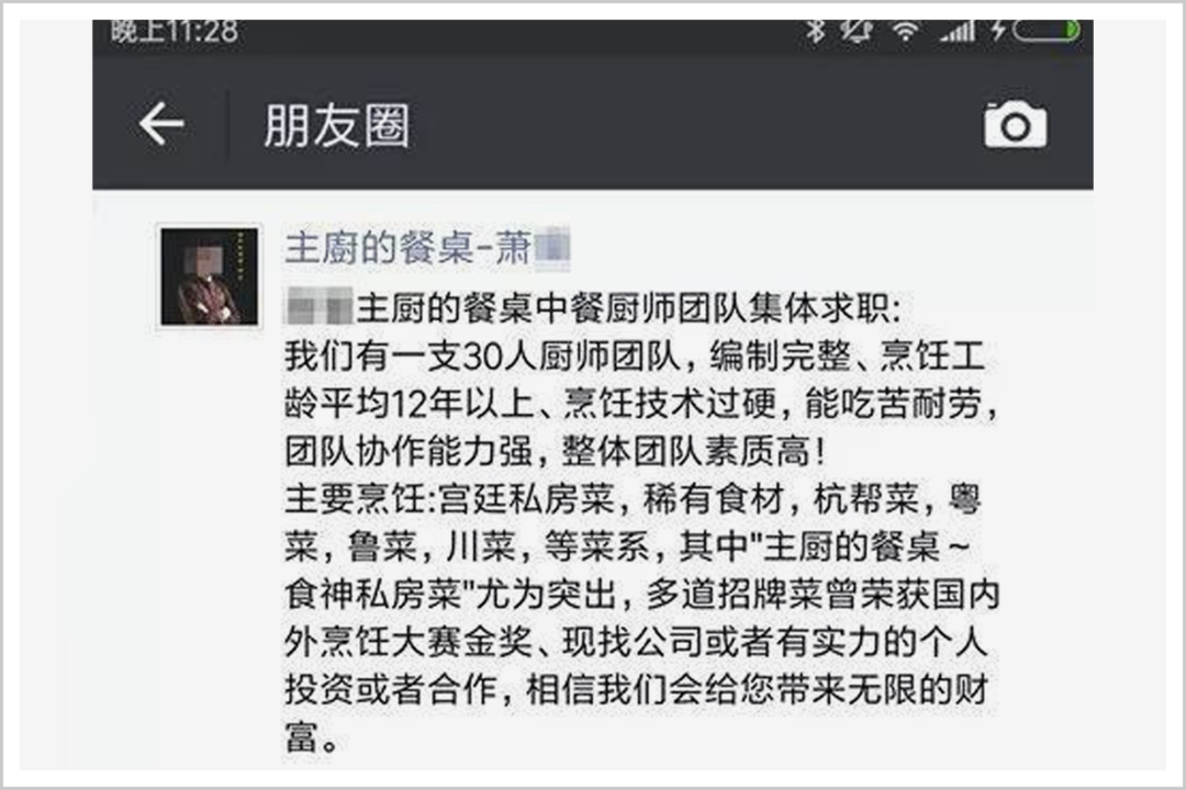 2018年,一封30名大廚集體跳槽的公開信出現在網上,這群大廚平均從業12年,宮廷私房菜、杭幫菜、粵菜等都能做,如今卻找不到工作。