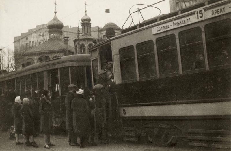 1932年,排隊乘坐電車的莫斯科老百姓,莫斯科人排隊講秩序這一點做得相當不錯。