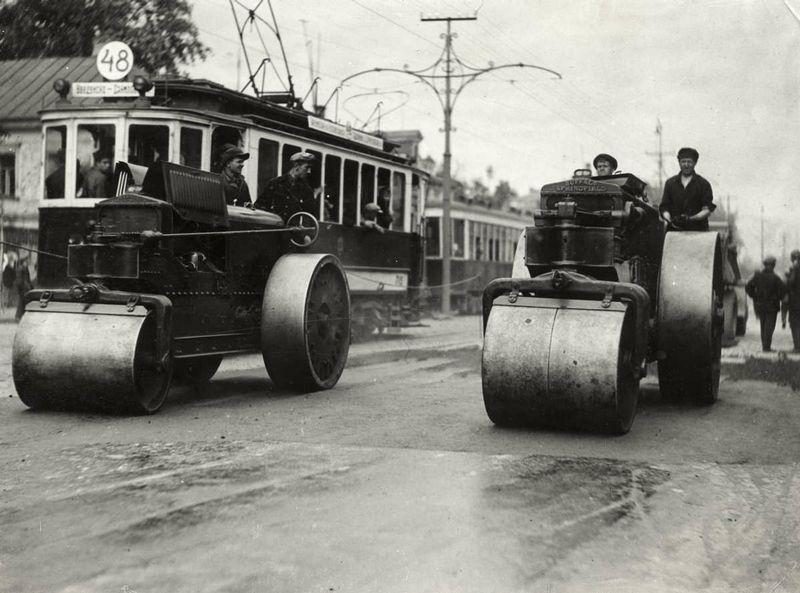 1931年在莫斯科修路的壓路機。