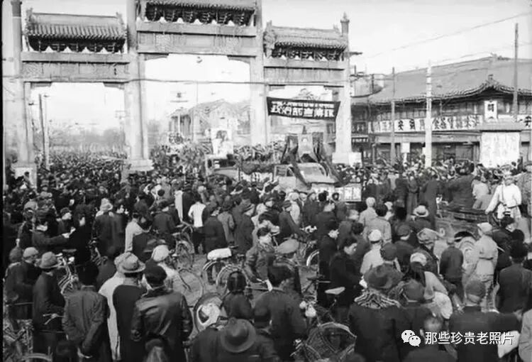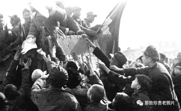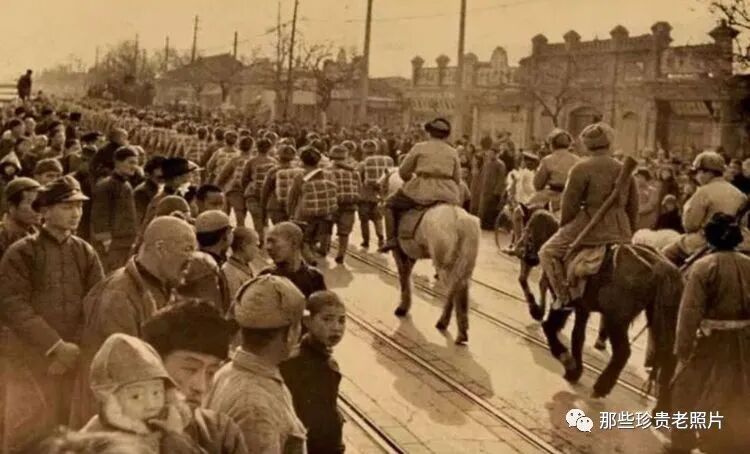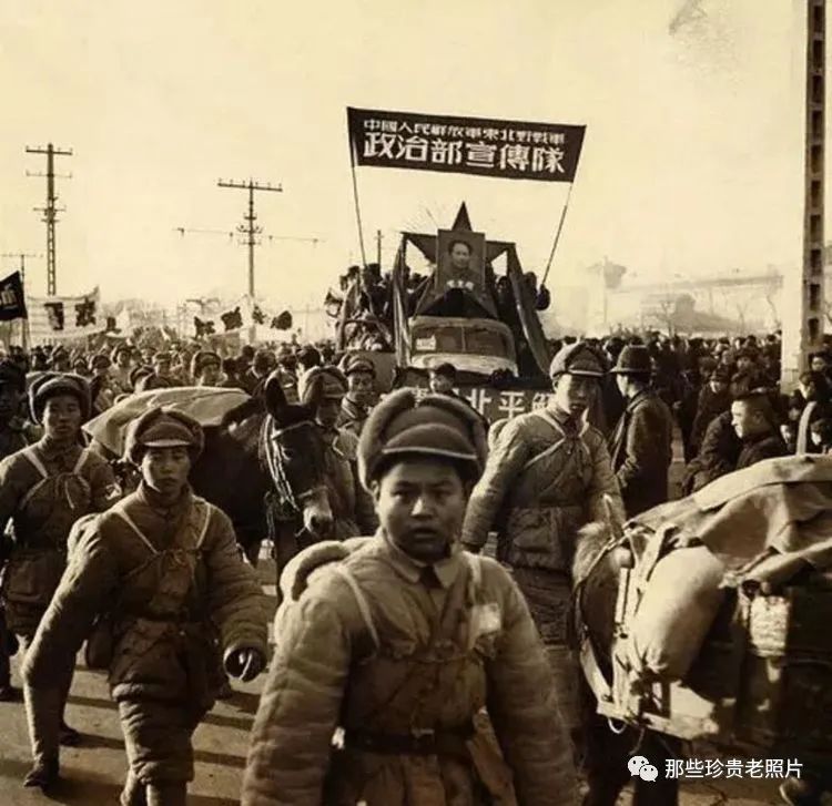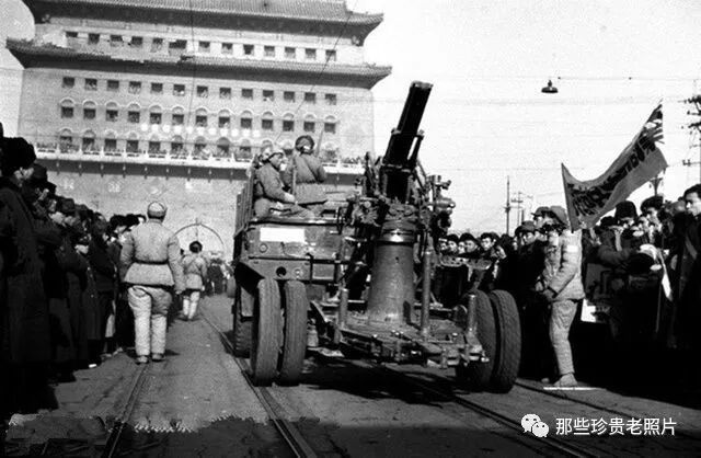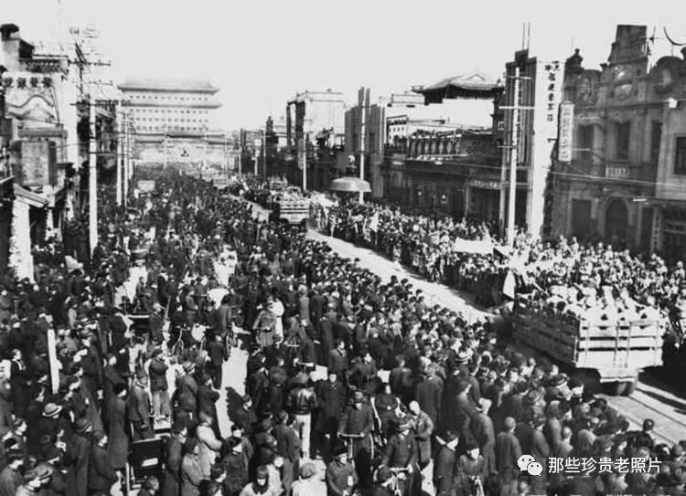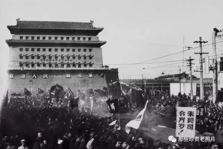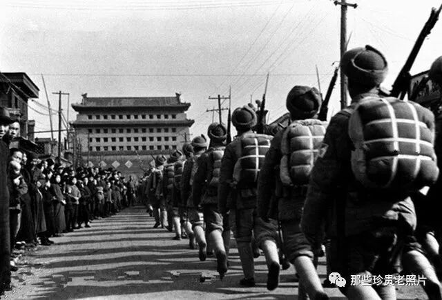 就在解放軍進駐北平的當天,許多北平的老百姓們夾道歡迎,城內的大學生們也拉起橫幅,組織起歡迎儀式,熱情歡迎解放軍的到來。人民群眾感謝子弟兵,感謝他們的大氣魄。