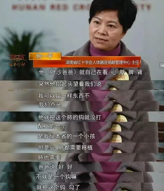 在簽署捐獻協議時,葉沙的爸爸看著心、肝、脾、腎的選項,突然抬起頭問工作人員: