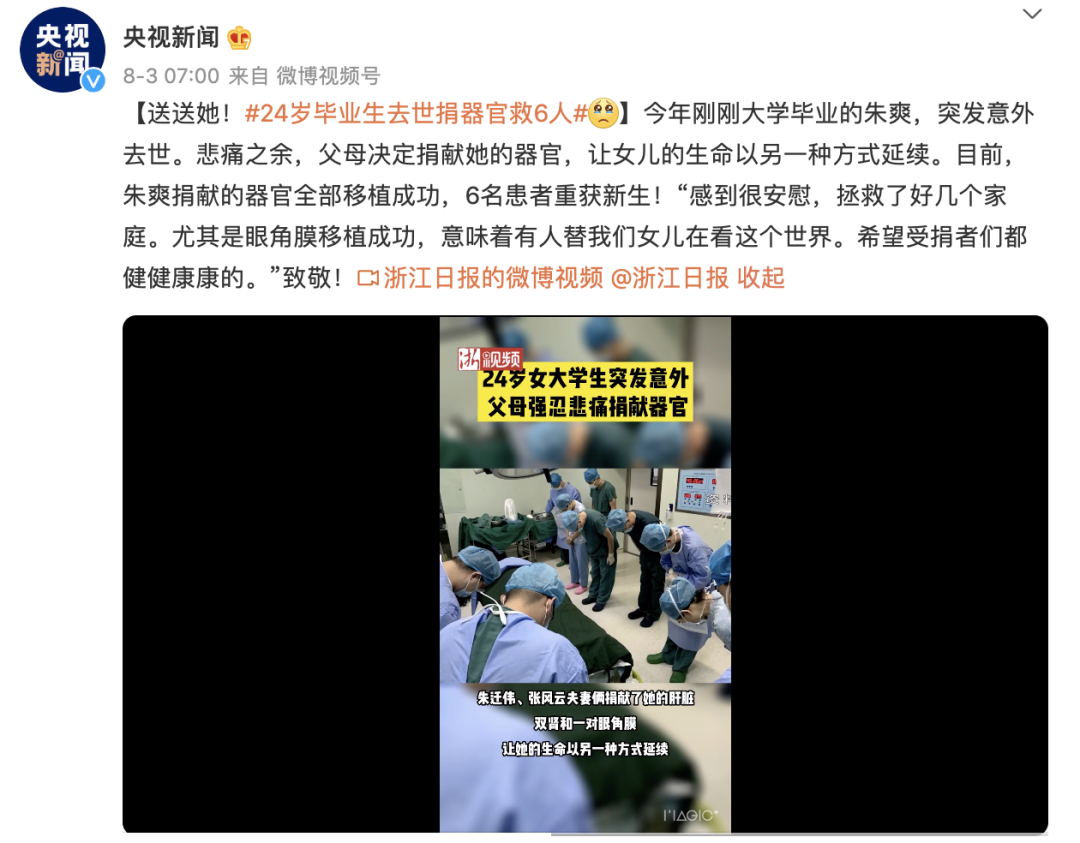 她的父母含淚簽下了器官捐獻表,捐獻了女兒的肝髒、雙腎和一對眼角膜。