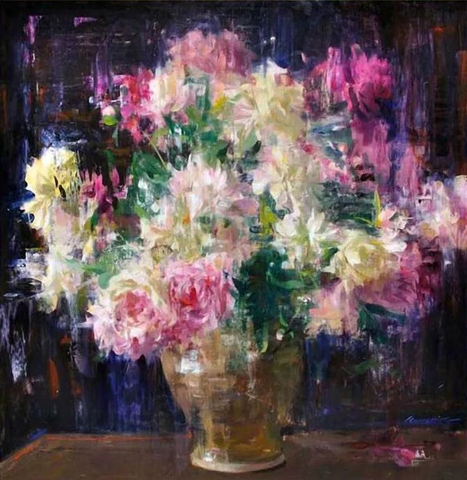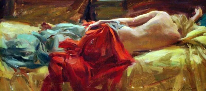他用油彩、水彩、粉彩畫靜物、風景和人體。“ 對我而言,題材不是很重要。在我周圍,我時刻能找到視覺興奮——從一朵枯萎的花到曼妙的人體,以及簡單的形狀和顏色的相拚... 靈感是取之不盡,用之不竭的 ”。