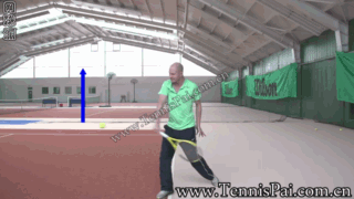 采用類似納達爾的繞頂隨揮,雖然動作誇張,但是非常有利於找到向上擊球的感覺,增加球的上旋。