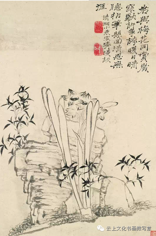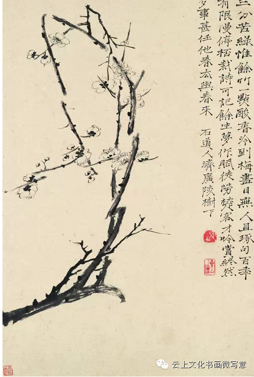 題識:三分苦綠惟餘竹,一點酸香冷到梅。盡日無人且琢句,百年有限漫停杯。裁詩可記餘生夢,作賦徒勞楚客才。吟賞終然多事甚,任他春去與春來。石道人濟廣陵樹下。