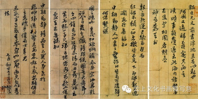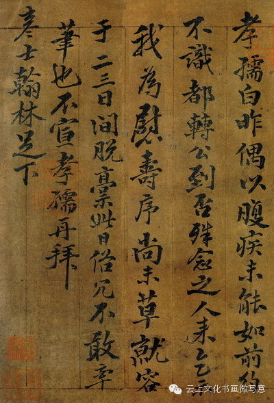 方孝孺是文章大家,今存世者有《遜誌齋集》及《方正學先生集》等。此劄內容為告朋友彥士未赴約之由,並詢問及都轉公之情況,最後言及朋友所請寫之壽序文因“俗冗”心不能靜而尚未脫稿。此劄內容平實,言簡意賅;其字氣息沉厚,點畫老辣,結體碩長,有大人態。古來忠烈、重臣之字,如顏真卿、翁同龢等都是此類風格。從此劄中,可見其人實乃端人正士,筆筆到位,字字獨立,無逢迎之態,令人奉讀之如麵君子。