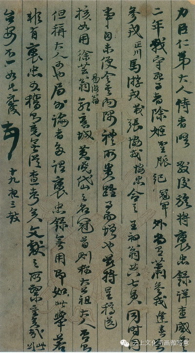 駱秉章,原名俊,以字行,號儒齋。道光進士,善書法,亦在清代名書家之列。辛翁即辛階勞崇光,曾任兩廣總督及雲貴總督。駱氏信中提及“欣頌川中軍務去秋略有頭緒”正值駱新任四川總督整頓軍務之時。還提及與李、藍所領川滇農民軍作戰情況,並稱“藍逆已誅”。所稱“石逆”當指石達開。又“官軍追及即遁,未審何時始能了局”,流露出對追討石達開部無奈的擔心,此當是駱為何要寫此信給任雲貴總督的辛階的原因。此劄共六頁,洋洋數千言,所寫內容不僅涉及軍務、政務,甚至還涉及經濟、宗教等。