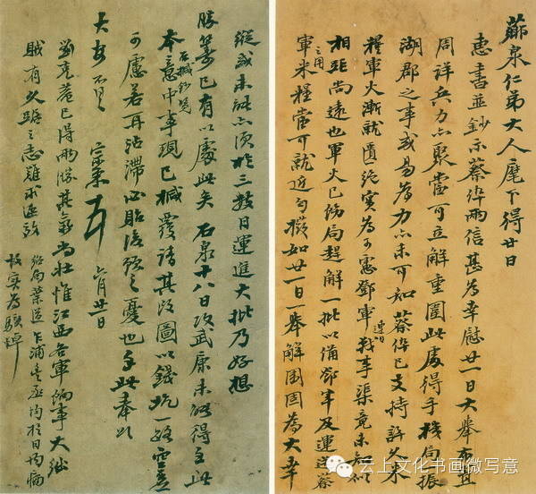 左宗棠,自幼聰穎,為道光舉人。太平天國起義爆發後,由好友胡林翼保薦,先後入湖南巡撫張亮基、駱秉章幕下,為抵抗太平軍出謀劃策。鎮壓太平天國後,從事洋務。晚年曾指揮清軍收複新疆。又任軍機大臣,中法戰爭時督辦福建軍務。積極布防並組成“恪靖援台軍”東渡台灣。其晚年在收複邊疆和加強海防增援台灣方麵功勳卓著。薌泉為曾國藩心腹之一。同治元年(1862)攻占杭州後,任浙江布政使。 《左宗棠致薌泉劄》,前劄開首便稱“閣下初入杭城,諸務草創,弟以一手經理百端……”,當是指薌泉率軍援浙,攻占杭州之際。時左宗棠當任浙江巡撫並升閩浙總督。該函主要是傳達戰況,指揮追擊分頭轉移的太平軍,情勢非常緊急,故此劄還注明“辰刻”。而後劄則無,且字體亦比前劄端正些,反映出前劄寫得比較倉促,後劄比較從容。