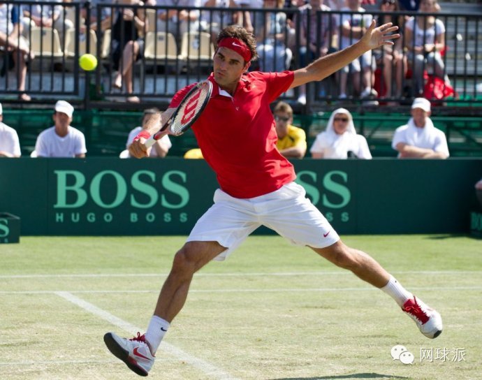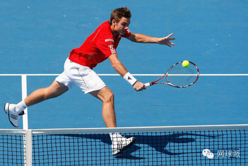 如果兩腳緊貼地麵不動,是不可能打出有力量的截擊球的。站定了的姿勢很難將身體重心放在軸足上,而且身體處於打開的狀態下擊球,也不可能打出力量來。首先要跨步,如果是正手萎球則出右腳,反手則出左腳,同時使肩部也參與準備,盡早做好擊球姿勢。