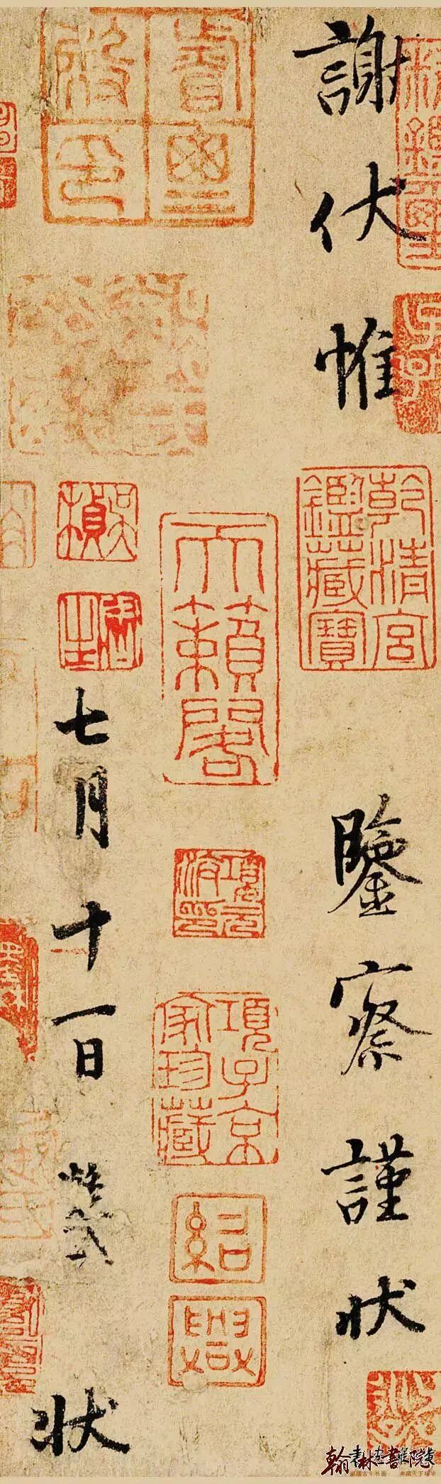 晝寢乍興, 輖饑正甚 忽蒙簡翰 猥賜盤飧 當一葉報秋之初 乃韭花逞味之始 助其肥羜 實謂珍羞 充腹之餘 銘肌載切 謹修狀陳謝 伏惟鑒察 謹狀 七月十一日 狀