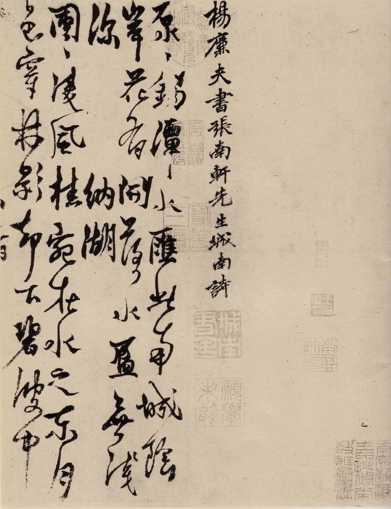 我猜想楊維楨是鐵笛第一,因為鐵笛我沒聽見,所以第一,書法第二,詩文第三。趙孟頫的書法我知道也好,但就是興趣不大,我直接看王羲之就是了。楊維楨的書法,雖然不能說前無古人,而新意常有。他比他的本家楊凝式更野——楊凝式是鱖魚時節瀟灑的斜風細雨,楊維楨是青蛙亂蹦的雷陣雨。但“城南唱和”,這個場景真好。亂世間的愁怨,讓後人不容易看出,也真好。文章的高下,這是之二。(車前子)