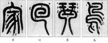 篆書的筆順和漢字筆順規則基本相仿,如先橫後豎、從上到下、從左到右等,這些對初學者來說是不成問題的。重要的是和漢字不同的筆順,而這些不同之處正是篆書筆順的特點,掌握了這些特點,就能把握好篆書的結體,做到勻稱勻衡。