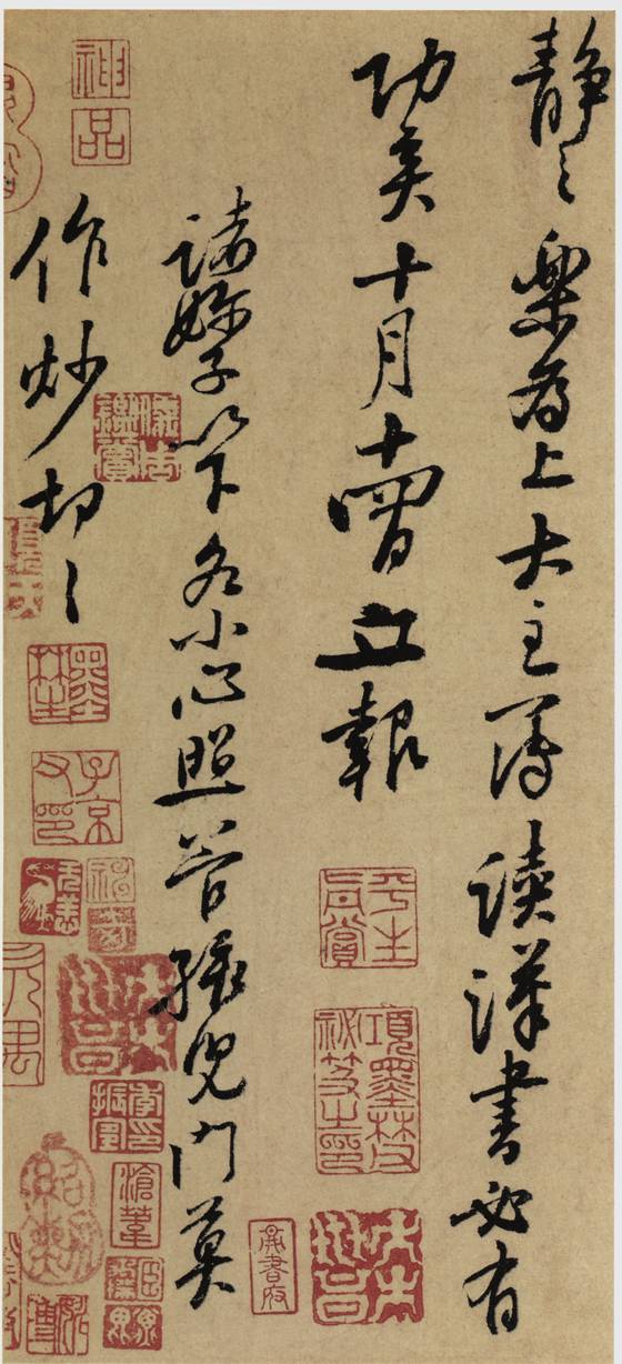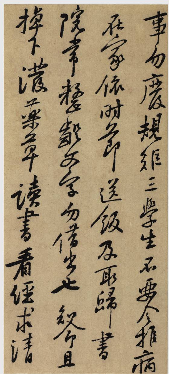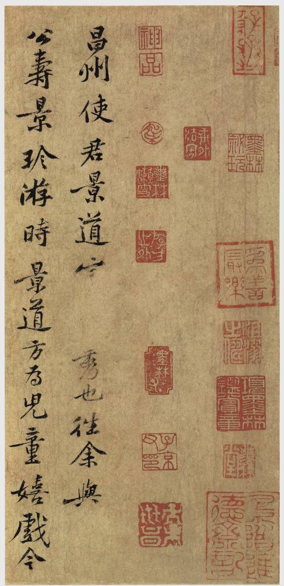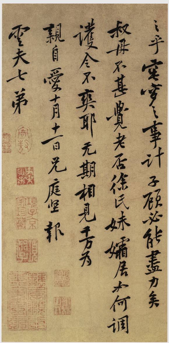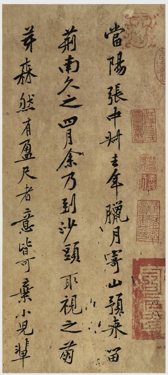 黃庭堅在上溯晉唐、學習前人經典書法時,對其影響最大的莫過於蘇軾,可以說黃庭堅的手劄小行書在很大程度上是學蘇軾的。黃庭堅作為“蘇門四學士”之一,不能不受蘇軾書風的影響。在黃庭堅書論中,評東坡書頗多,且多為推崇備至者。蘇東坡不僅是黃庭堅文學上的老師和提攜者,而且也是其書法的學榜樣。