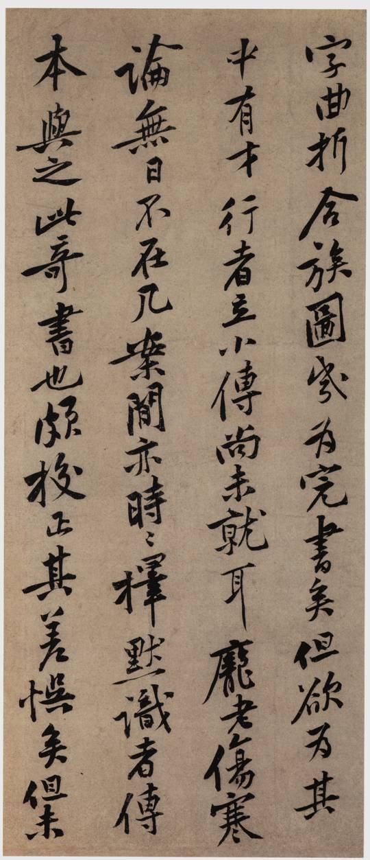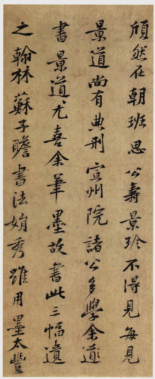 在黃庭堅題跋中,即反映出黃庭堅從蘇軾處學習書法的一些消息,如“予與東坡俱學顏平原。然予手拙,終不近業”,又如“東坡此帖,甚似虞世南公主墓銘草。餘嚐評東坡善書乃其天性。往嚐於東坡見手澤二囊,中有似柳公權、褚遂良者數紙,絕勝平時所作徐浩體字。又嚐為餘臨一卷魯公帖,凡二十紙,皆得六七,殆非學所能到”。黃庭堅與蘇軾相差八歲。二人交誼師友之間。