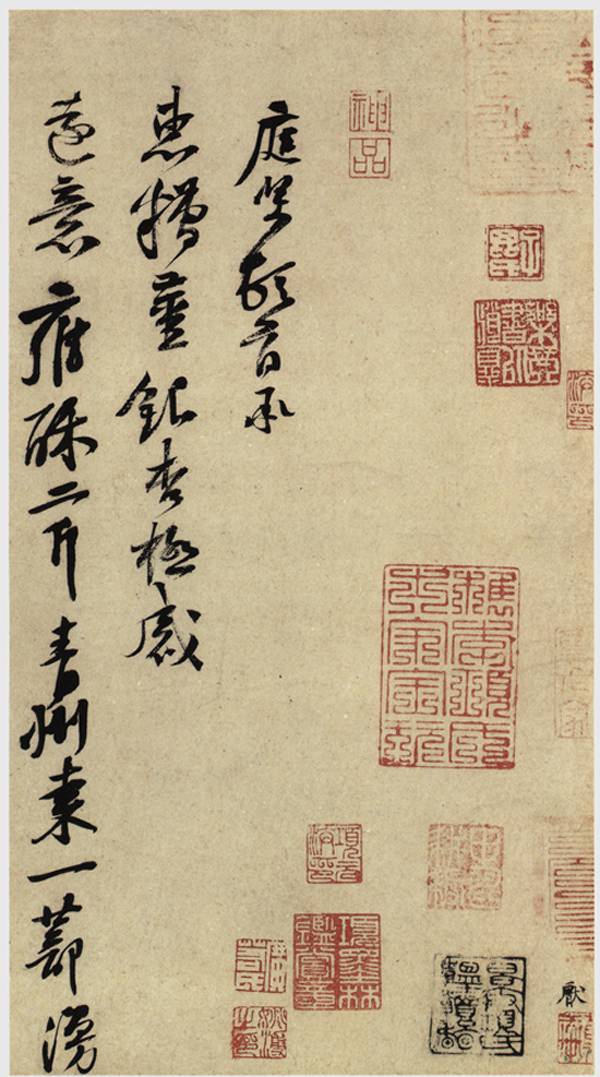 從客觀上看,黃庭堅與蘇東坡是中國書法史上早於清代八百年超越唐代書風的籠罩而遠溯先唐碑版或者說進行碑帖結合的書家。對於蘇軾書風形成的淵源,隻要把其代表作《寒食詩帖》與洛陽《龍門二十品》做一比較,即可得出明確答案。黃庭堅是中國書法碑帖融合風範之萌芽。