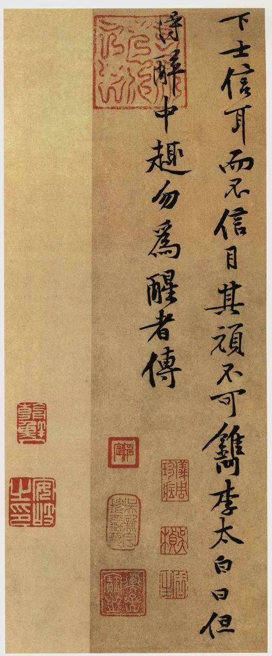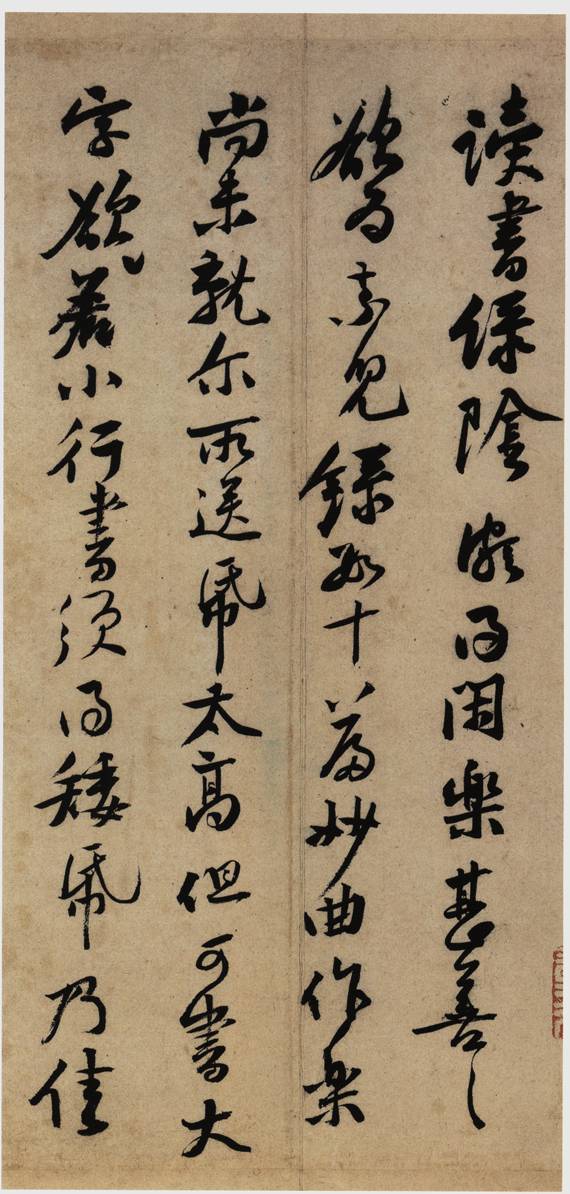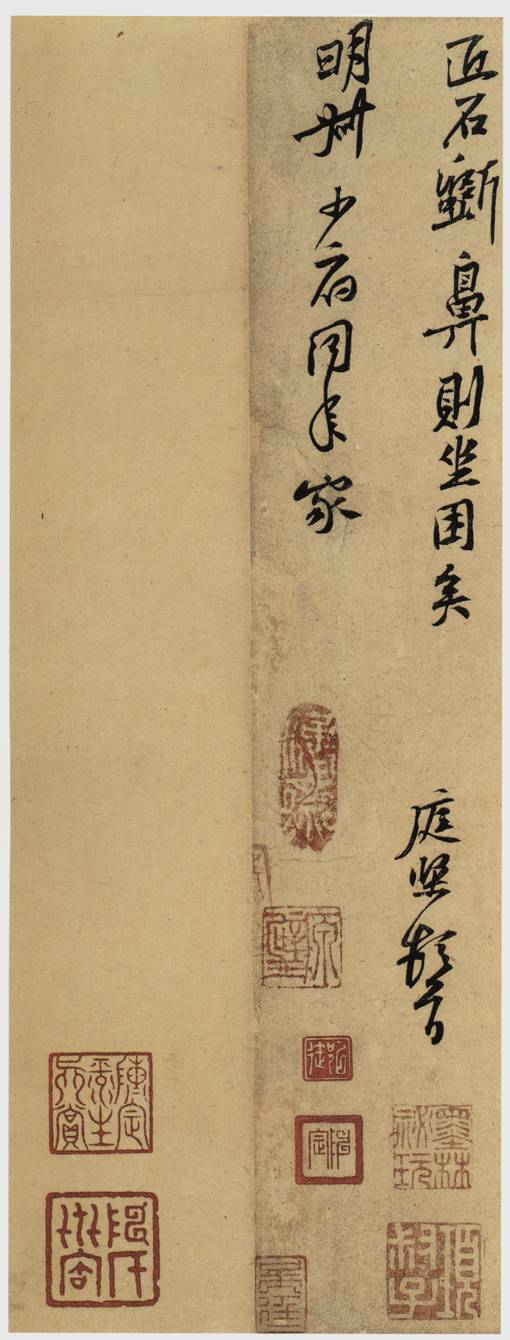 黃庭堅行楷大字書風的形成當為其於京口見斷崖《瘞鶴銘》之後並不斷師法孳乳而自成家法的。黃庭堅師《瘞鶴銘》有一個誤會,即他把《瘞鶴銘》看做右軍所書,且深信不疑,故而傾力揣摩師習。不過也算是歪打正著,這倒促進了黃庭堅長槍大戟、綿勁遲澀書風的形成。