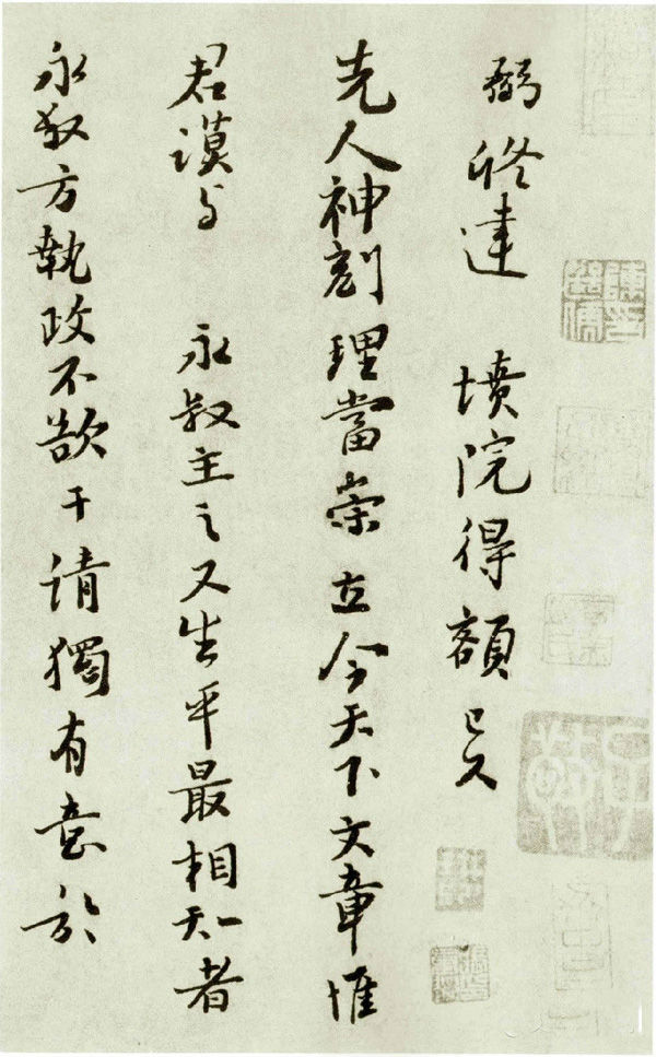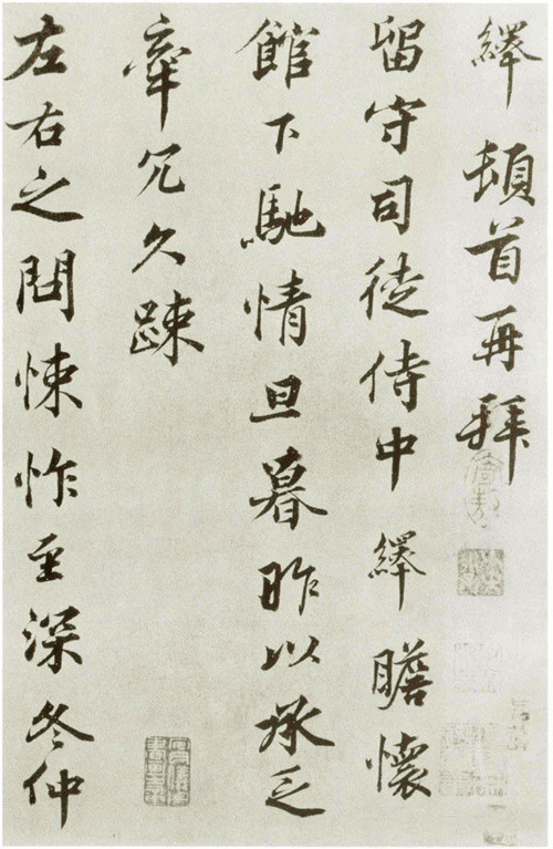 釋文:弼修建墳院 得額已久 先人神刻 理當崇立 今天下文章 惟君謨與永敘主之 又生平最相知者 永叔方執政 不欲於請 獨有意於君謨久矣 但為編次文字未就 故且遷延 昨因示諭 輒敢預聞下執 即非發於偶然 惟故人倫察 少安下情也 皇恐皇恐 院榜候得請 別上聞 次圓覺偈 亦如教刊模也 哀感何勝 弼又上溫柑絕新好 盡薦於幾筵 悲感悲感 弼又啟