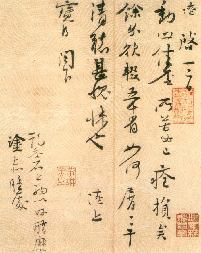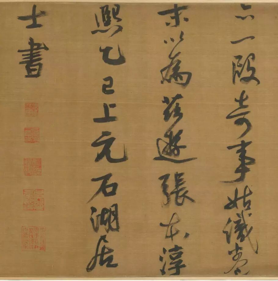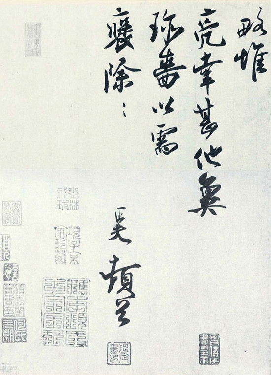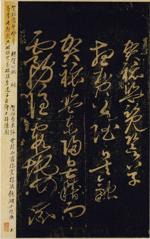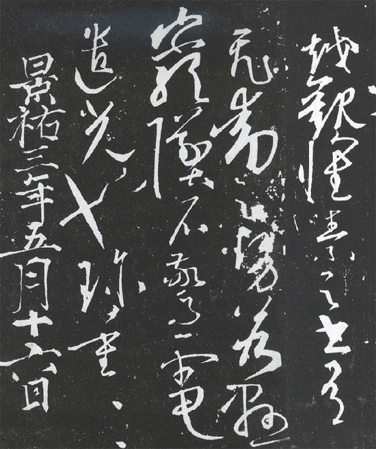 釋文:越觀懷素之書有飛動之勢 若懸岩墜石驚電遣光也 珍重珍重 景祐三年五月十六日