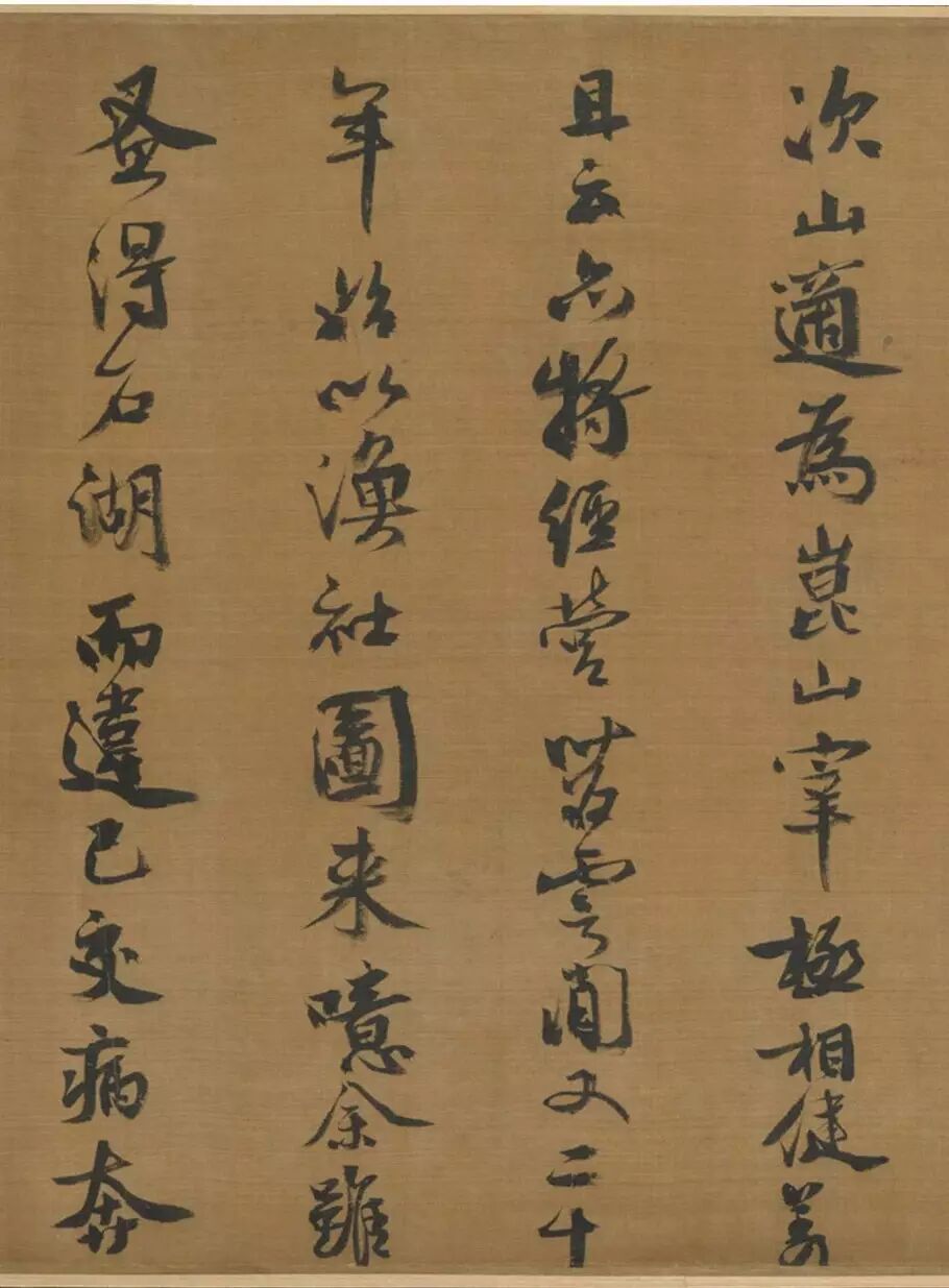 作於海陵王正隆五年(1160),此書精神多賴顏真卿,我們甚至可以從中找出顏真卿《裴將軍》的影子。任詢在金初享有大名,被譽為第一,但其作品中學古未化的問題還是存在的。其實稍後的評論家也指出了任詢書法中的問題。如元好問認為“學東坡而稍有斂束”(《元好問全集》)、王惲也有“其擘窠大書,往往體莊而神滯”(《秋澗先生大全文集》)這樣的觀點,等等,已經很明確地指出了任詢的不足。就任詢自身而言,放諸書法史絕對不是一流的書家,即使在金代也差強人意。然在金初,甚至與南宋書壇諸家相比較,任詢書法的氣勢還是較為可觀的,這是任詢的成功處,也是他的書法的意義所在。