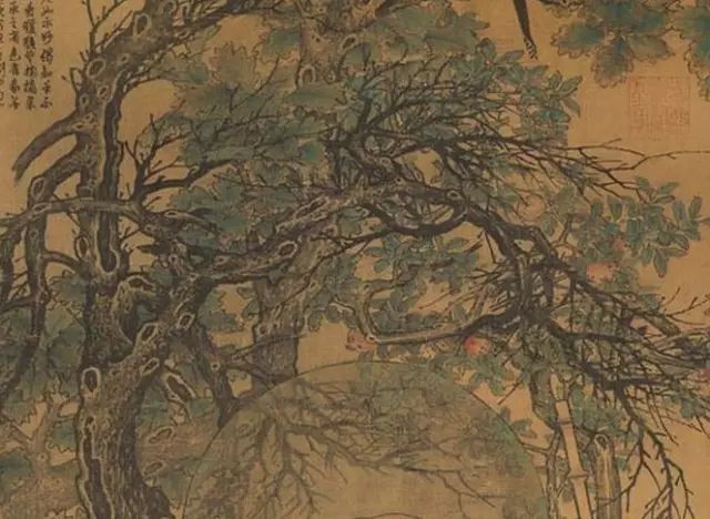 ▼ 《雙喜圖》原題“宋人雙喜圖”,後因在圖中樹幹上發現有“嘉祐辛醜年崔白筆”的題識,故歸於崔白名下。“嘉祐辛醜”為宋仁宗嘉祐六年(1061),此時正是崔白畫藝的成熟時期。