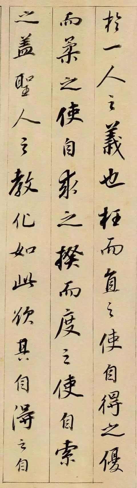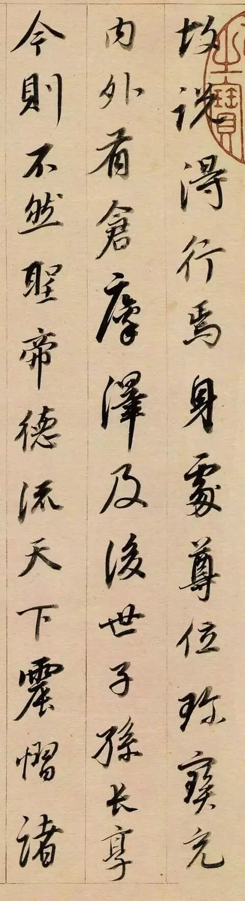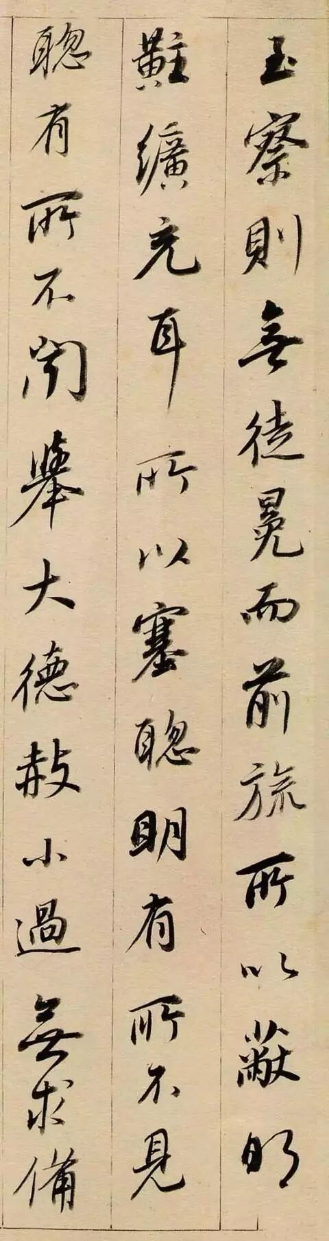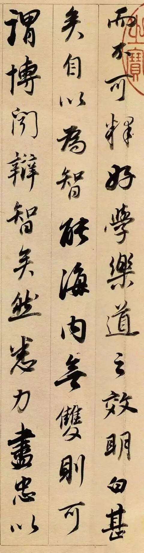 董其昌的書寫能結合自己的個性,力追帖學風神。此作行中兼楷,用筆有顏真卿的率意,體勢有米芾的欹側,布局得趙孟頫之風神,輕捷自如而風華自足,反映出一種人格風範。總之,他力追古法,體現了自然秀雅的書法風格,創造出一種不食人間煙火的氣象。品讀這件作品,有如清風拂麵,令人心氣爽然。從作品中,我們能感受到董其昌所具有的聰慧和機巧。康有為評價董其昌書法“如休糧道士”。要知“休糧道士”的遠離塵世、嫻靜安詳、不動聲色也是一種美。這種美雖然不同於剛毅之美,卻也是一種難得的境界。