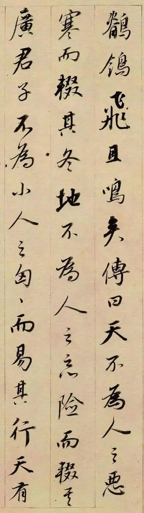 這件作品書寫輕鬆自如,平淡中蘊奇秀,用筆圓潤精妙,法存筆端,真正是瀟灑出塵、遊刃有餘。在書寫上,他行筆輕捷,轉折自如,用筆精到,沒有拙滯之筆;用墨也非常講究,枯濕濃淡,盡得其妙;在章法上,字距密,行距疏,布局疏朗勻稱,與平淡率真的書風相和諧,具有清潤虛靈、古淡散逸之美。董其昌善於在平淡中求變化、於灑脫中求雅逸,正合他“漸老漸熟,反歸平淡”之意。