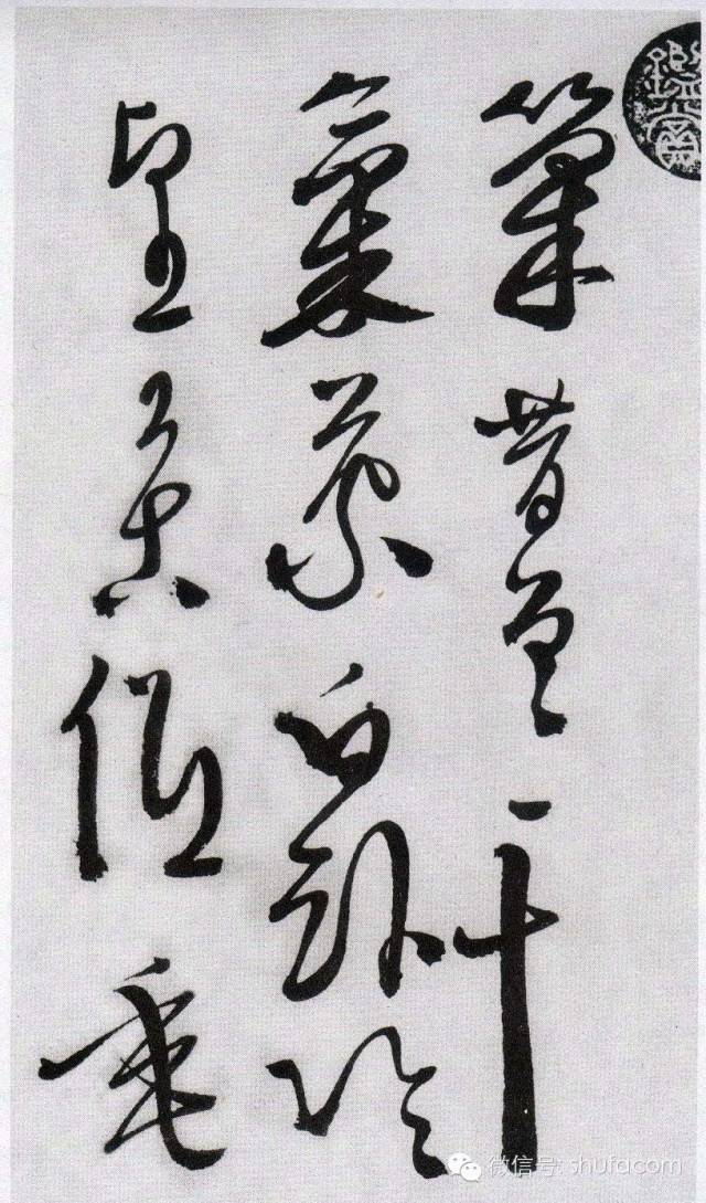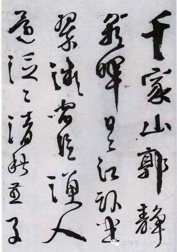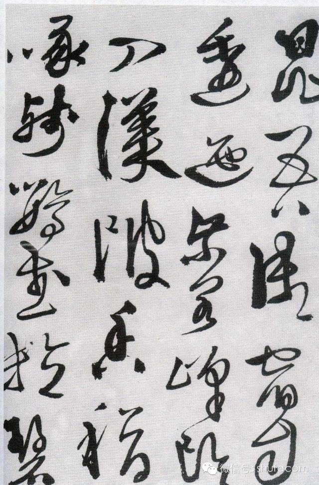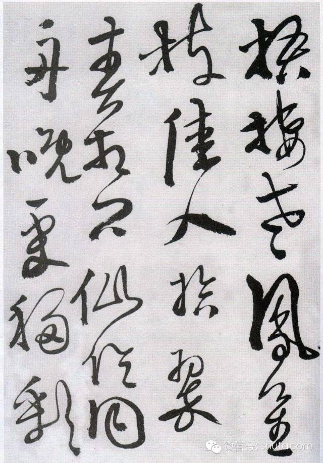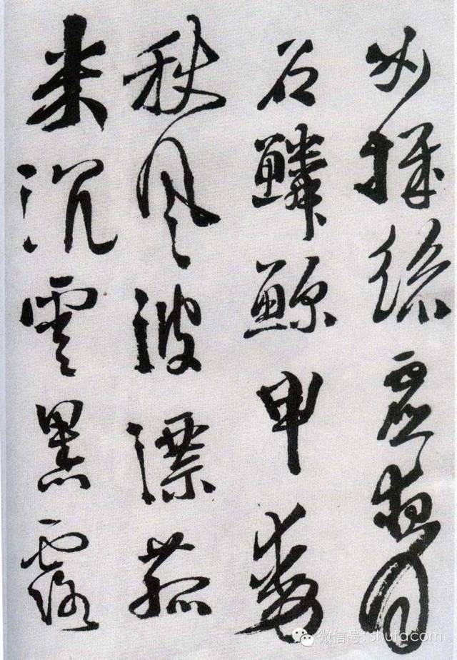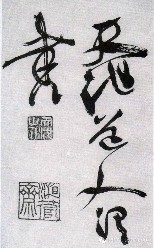 如果說徐渭的行書已用“己意”實現了對傳統筆法的改變,那麽,最大的改變是那些高頭大軸的中堂行草書。以前說“董其昌破壞了墨法”,在這則要說“徐渭破壞了筆法”。徐渭在書法從卷冊翰劄的文房把玩轉向廳堂展示審美的變革中,實現了作品創作中筆法的改造。《代應製詠劍草書軸》和《代應製詠墨草書軸》是其代表作。徐渭這種借鑒於繪畫的點畫表現方法,是對晉唐筆法的創造性破壞。對於書法藝術這種美術化傾向的改變。 劉正成《書法藝術概論》)