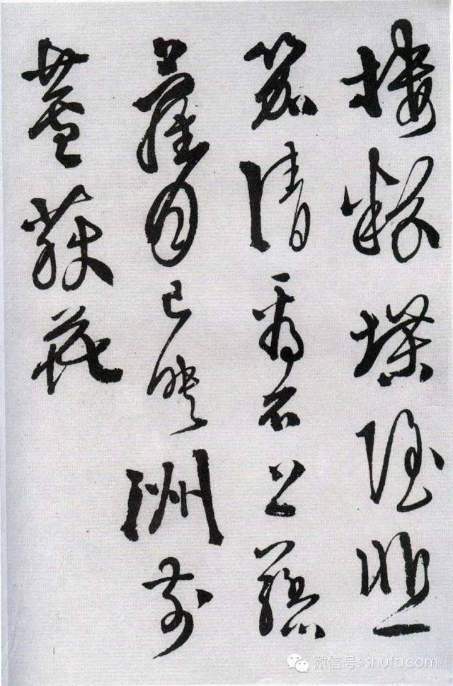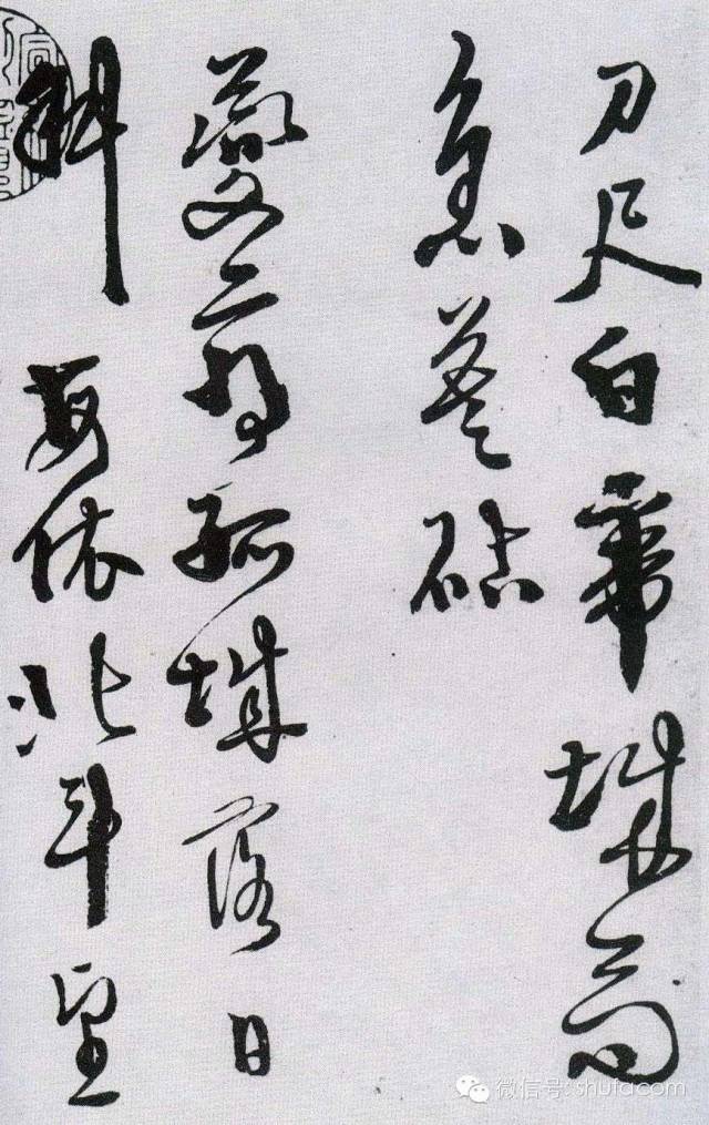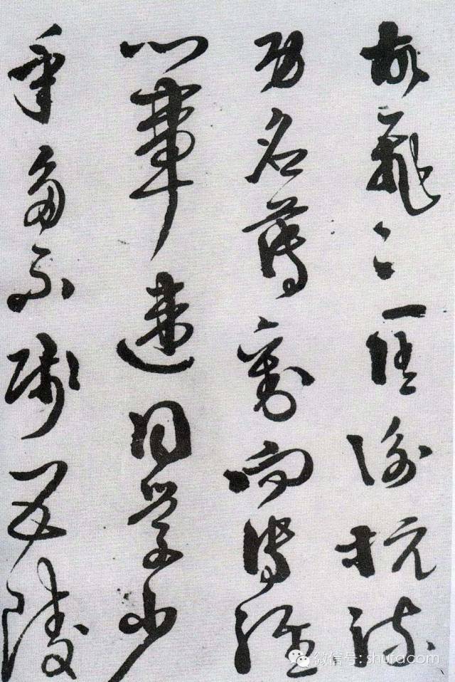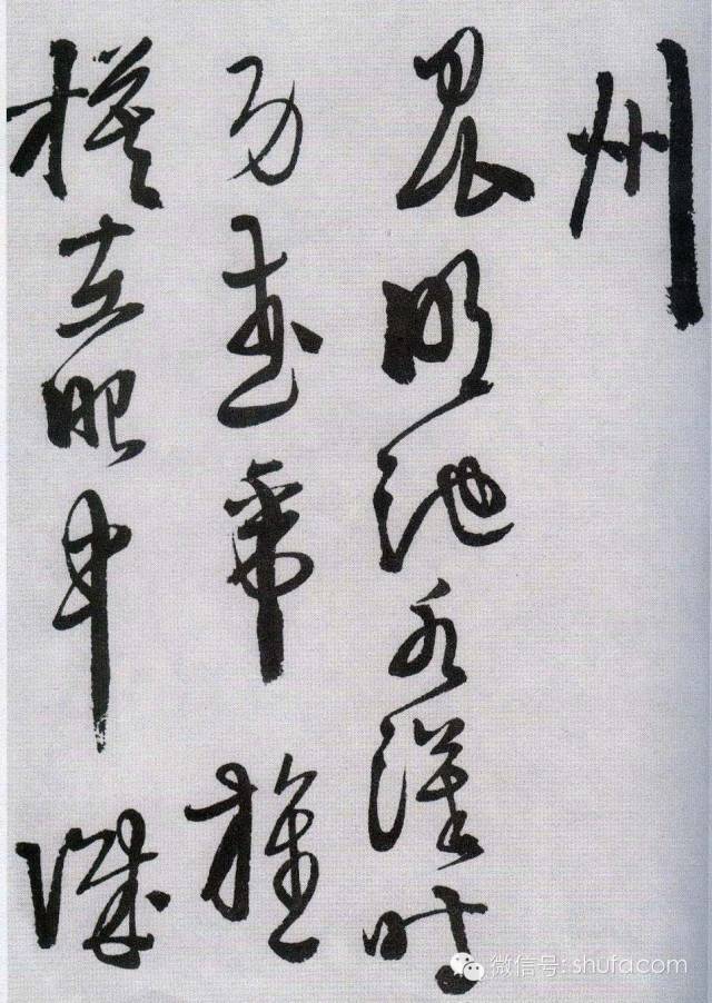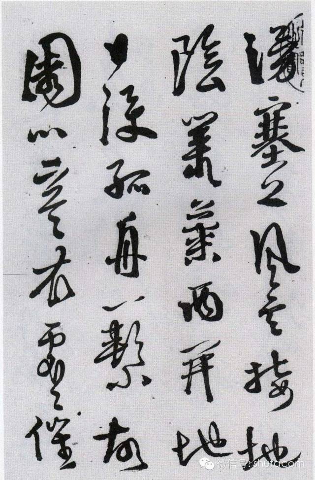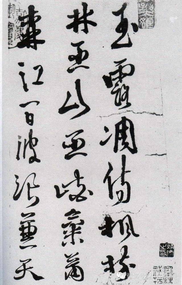 如果說徐渭的行書已用“己意”實現了對傳統筆法的改變,那麽,最大的改變是那些高頭大軸的中堂行草書。以前說“董其昌破壞了墨法”,在這則要說“徐渭破壞了筆法”。徐渭在書法從卷冊翰劄的文房把玩轉向廳堂展示審美的變革中,實現了作品創作中筆法的改造。《代應製詠劍草書軸》和《代應製詠墨草書軸》是其代表作。徐渭這種借鑒於繪畫的點畫表現方法,是對晉唐筆法的創造性破壞。對於書法藝術這種美術化傾向的改變。 劉正成《書法藝術概論》)