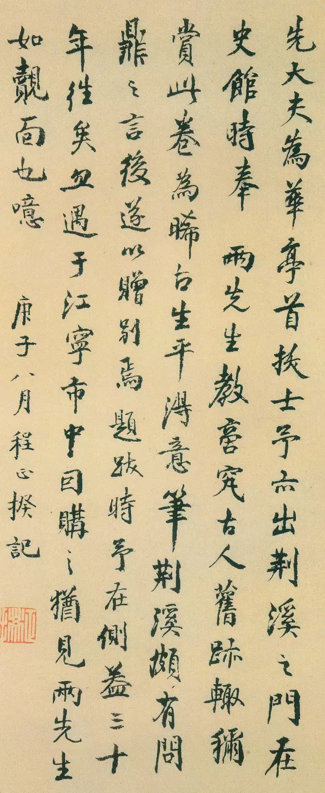 程正揆(1604-1676),字端伯,號鞠陵,青溪道人,湖北孝感人。明時任翰林院編修、尚寶司卿,入清又任工部左侍郎。擅山水,書法擅楷書、行書,師法李邕、顏真卿,結體平正中寓奇險,豐韻蕭然。
