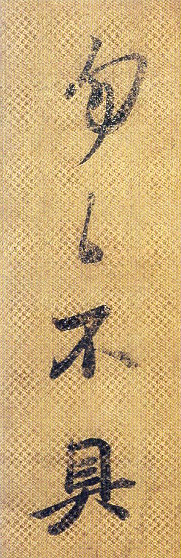 釋文:“廿九日獻之白。昨遂不奉別,悵恨深。體中複何如。弟甚頓。匆匆不具。獻之再拜。”除流傳的獻之楷書《洛神賦》外,其書多是行草書,此帖中有些字極近楷書,尤為難能可貴。