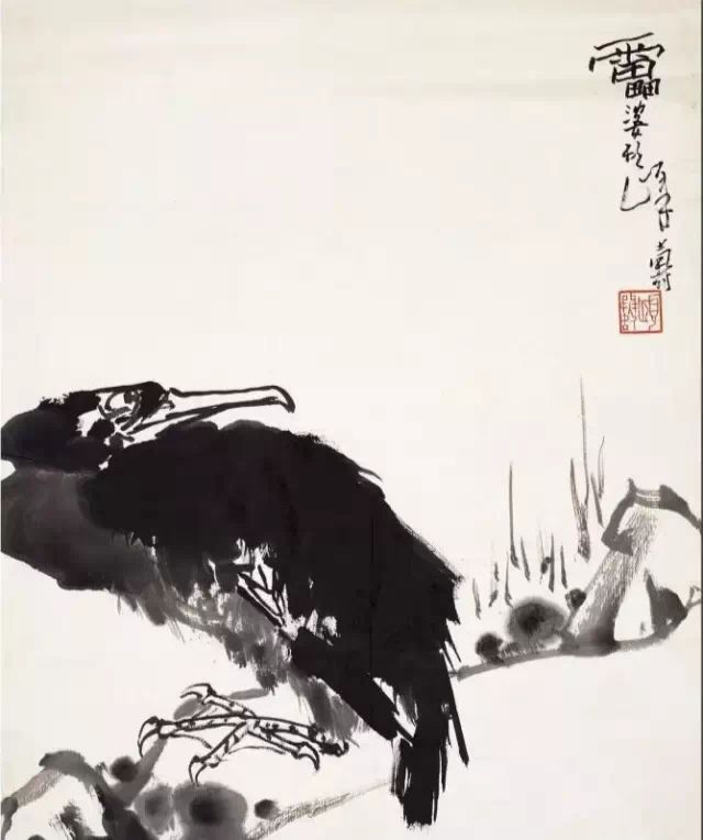 潘天壽鬆鷹1948年作149×40.5cm紙本水墨設色中國美術館藏