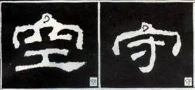 雖然中間有筆畫相隔,但左右仍需基本對平,形成遙相呼應、相互顧盼之勢。