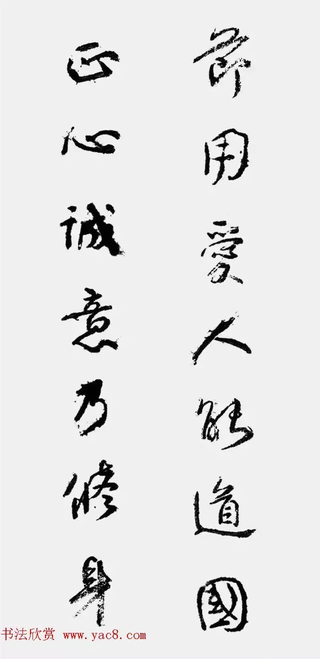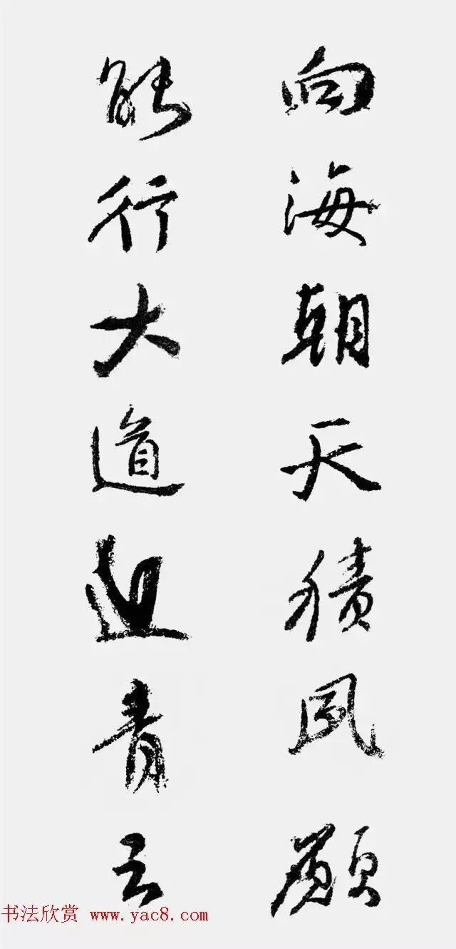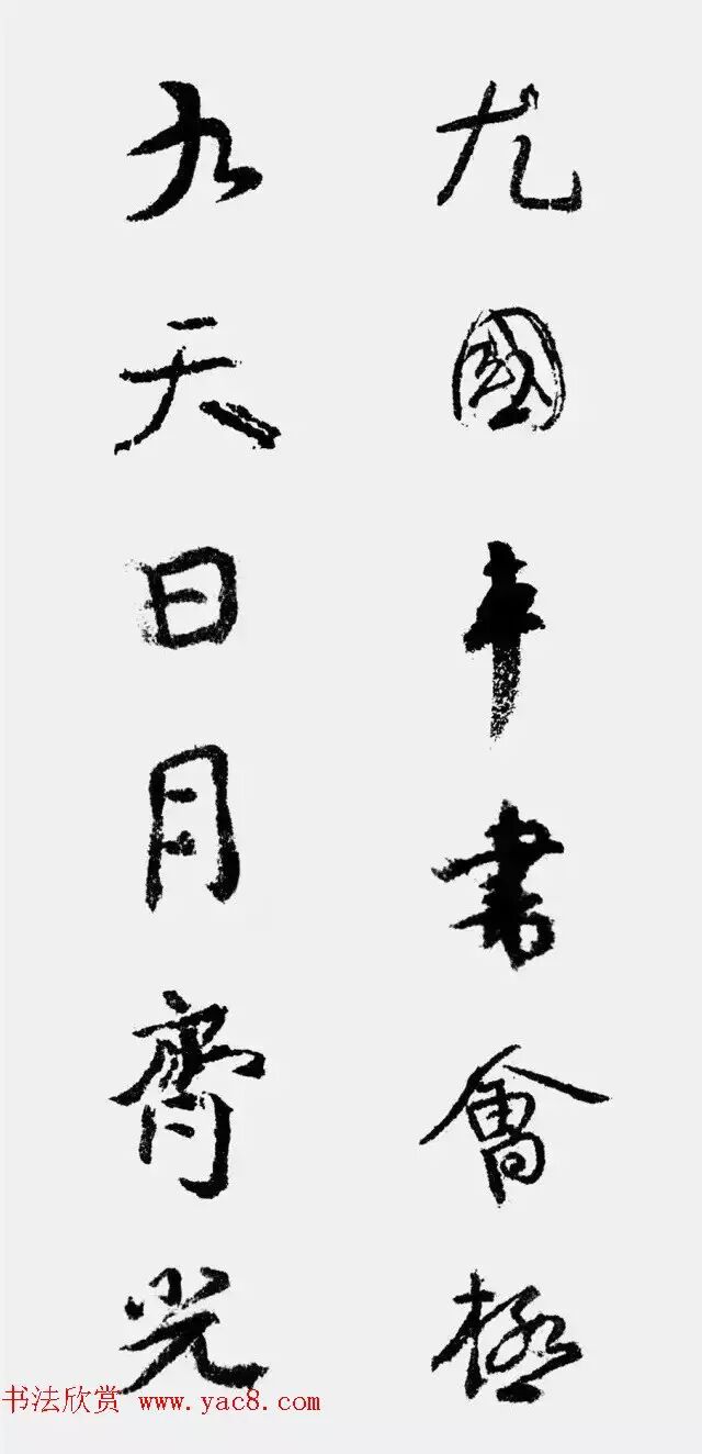 顏真卿行書集聯,用字來源:《祭侄稿》、《祭伯父稿》和《爭座帖》,此三帖中鋒運轉,沉著凜然,不取側鋒之妍,充滿篆籀氣。