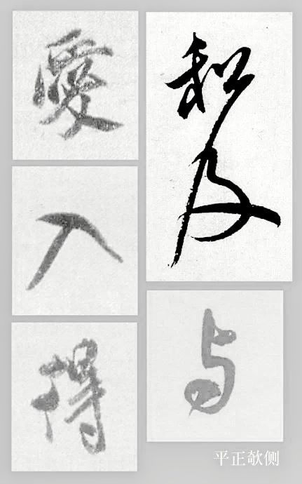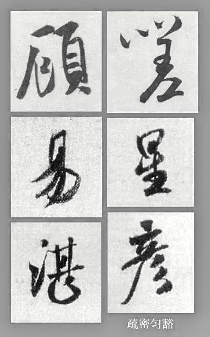 一字內有相同的點畫要處理得不雷同,如“形”字;一字內有相同的部分也要變化,如“羽”字;有相同偏旁部首的字在一起,該偏旁部首也要有變化,如“仕倦”;在一件作品中,同一字多次出現,也要求變化,如《苕溪詩》中幾個“好”字的變化。