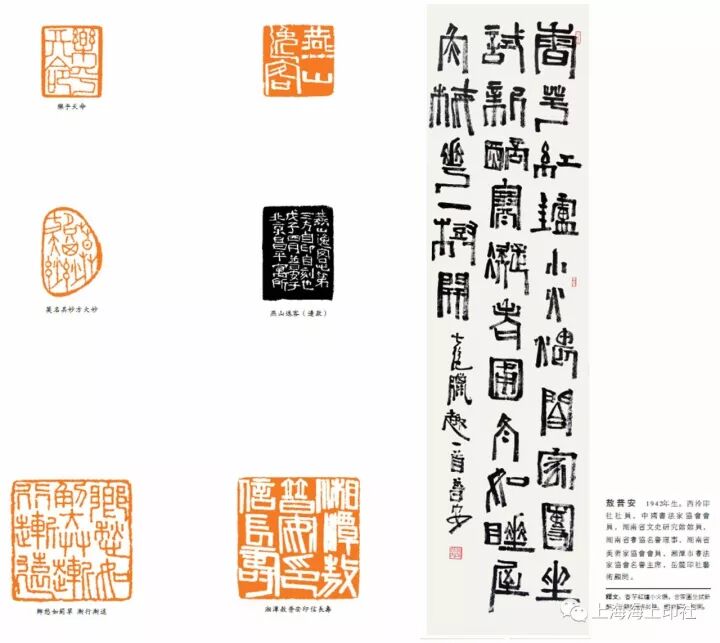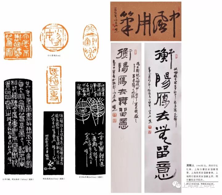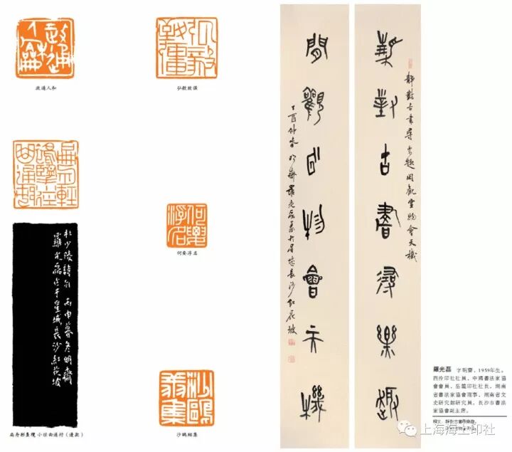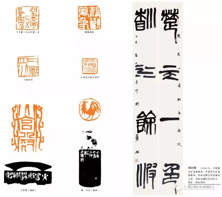 夫唯印事一疇。滬多耆宿,早著“海派”之名,流響 於世。更繼以今賢之眾,呼喚印林。湘雖蒙蔭淺薄,然恃 “蠻”直起。南收北獲,折桂再三。非橫空之“黑馬”,亦 駭俗之俊彥。今二美交並,書印同呈。雖非群賢畢至,俱臻 精絕,然亦可觀其大略,意老情殷。至若廟堂之正、山野之 奇、銅琶之厚、小唱之清、白雪陽春、巴人下裏之歎,隻援 書漫點,待君留說。