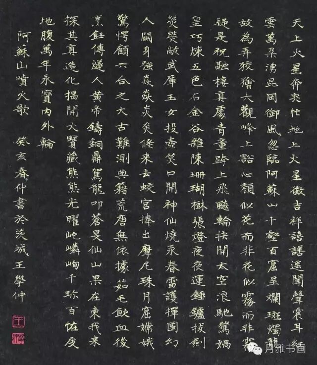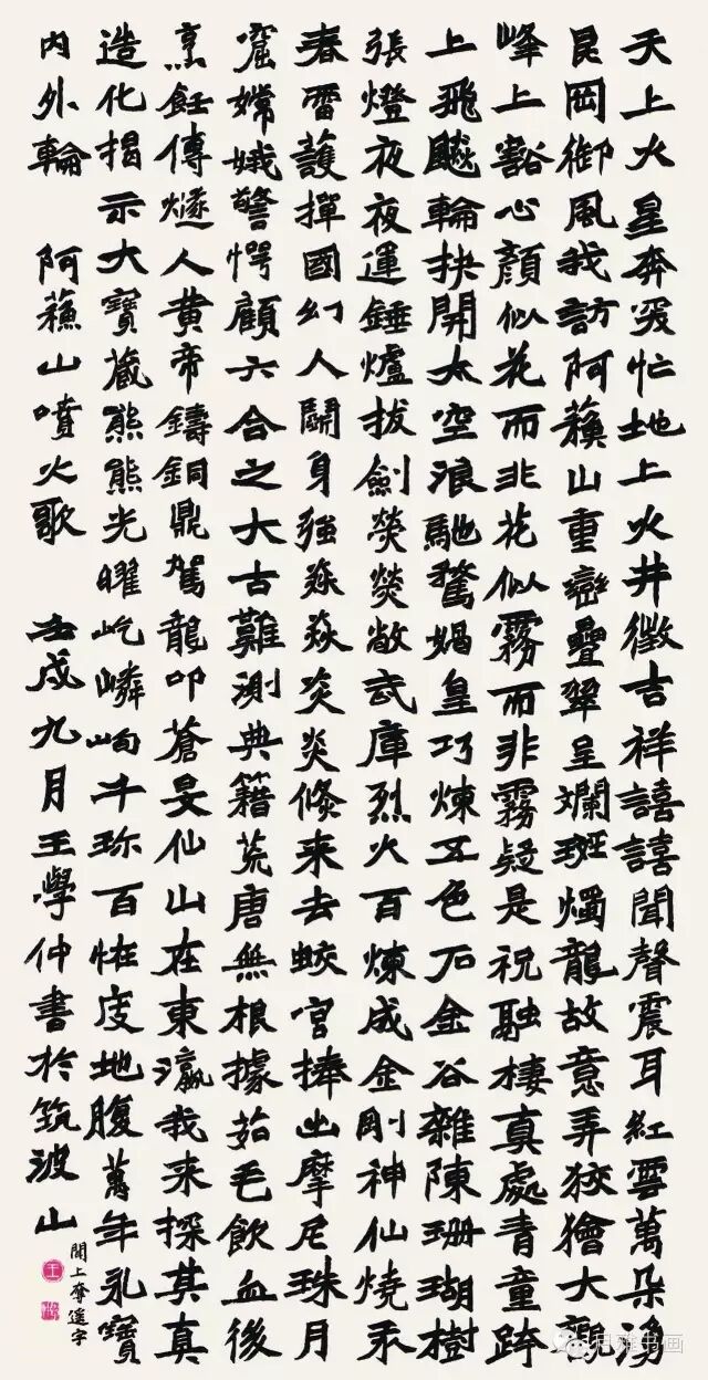 我在藝術所學習工作的這十年裏,頻頻聽到來訪的朋友將王老冠以藝術大師之類的稱謂,而王老卻說自己隻是一個教育家,一位詩人。說王學仲先生是一位教育家,那是因為他自1953年至今一直在從事教育工作,桃李滿天下。王先生是詩人,是在他的書畫作品中也總能體現出濃濃的詩意,藝術的高尚精神和詩人的憂患意識貫穿著他的藝術創作。王學仲先生是當代為數不多能作駢體文的學者之一,從他在詩、詞、文、賦等舊體文學上的造詣反應出王先生紮實的國學根基,能具備如此修為是和王先生的家學、天賦、勤奮分不開的。