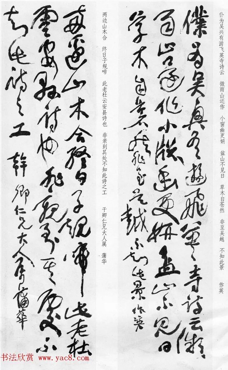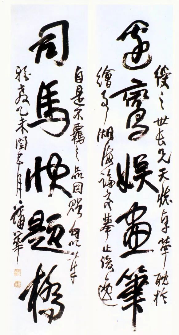 蒲華書法異於同時代的任何書家。在碑學大潮下,一些書家為了塑造自我麵目,追求自我風標,向碑學深處開拓。自鄧石如、何紹基和趙之謙之後,碑學的成功實踐已為碑派書法開辟了新路。在這一潮流中,甚至會出現象徐三庚、陶濬宣等極端地走火入魔的書家。從劣的方麵來說,要加以批判,但從好的一麵來說,這正見證了書家為錘煉自我風格的執著和不懈努力。在晚清無草書大家的情況下,蒲華是個值得關注的人物。他對前賢的繼承和演繹發揮,無疑示範了一種成功方式,使帖學在冷落的邊緣中仍然存在一隅,這是蒲華書法的曆史意義所在。