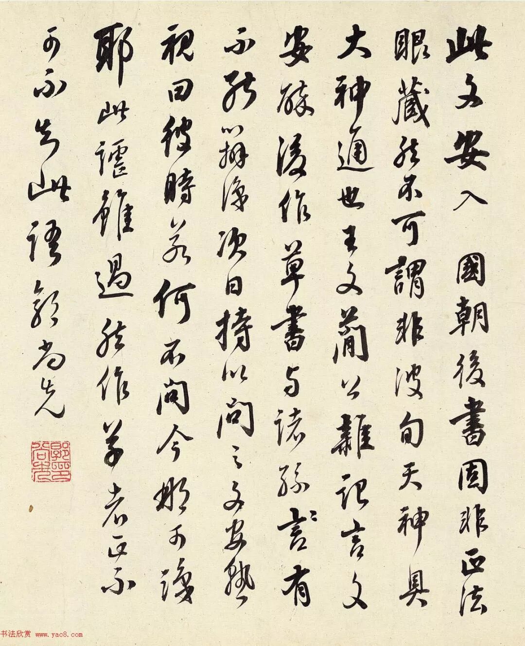 郭尚先書法題跋:此文安入國朝後書,固非正法眼,藏然不可謂非波旬天神,具大神通也。王文簡公雜記言,文安醉後作草書與諸孫,有不能辨識,次日持以問之,文安熟視曰,彼時若何不問,今那可識耶。此□雖過,然作草者正不可不知此語。郭尚先。