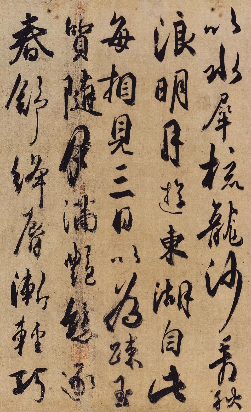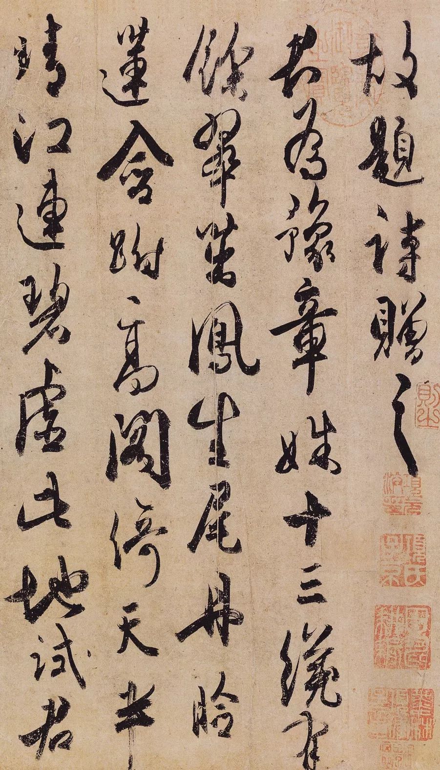 杜牧《張好好詩帖》的可貴之處就在於它是手稿,是日常書寫,我們從作者不經意的用筆破綻處恰恰可以看見其用筆的端倪。從這一點來說,此作在帖學的學習上遠遠要比那些間接的碑刻和摹本更真實可信。帖中的字,幾乎筆筆都是轉筆完成,各種完形的、變形的、殘缺的絞轉筆法在盡情的舞蹈,氣勢連綿,墨筆酣暢,因是詩稿,所以又多了樸實無華之美。