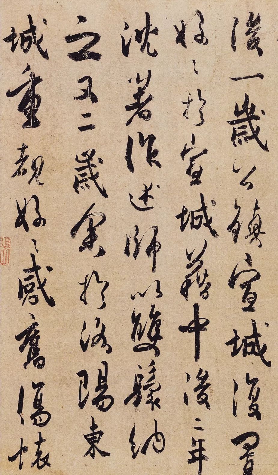 這件作品原不是作為書法作品來寫的,由於心情極度悲憤,情緒已難以平靜,錯桀之處增多,時有塗抹。但正因為如此,此幅字寫得凝重峻澀而又神采飛動,筆勢圓潤雄奇,姿態橫生,純以神寫,得自然之妙。通篇波瀾起伏,時而沉鬱痛楚,聲淚俱下;時而低回掩抑,痛徹心肝,堪稱動人心魄的悲憤之作。