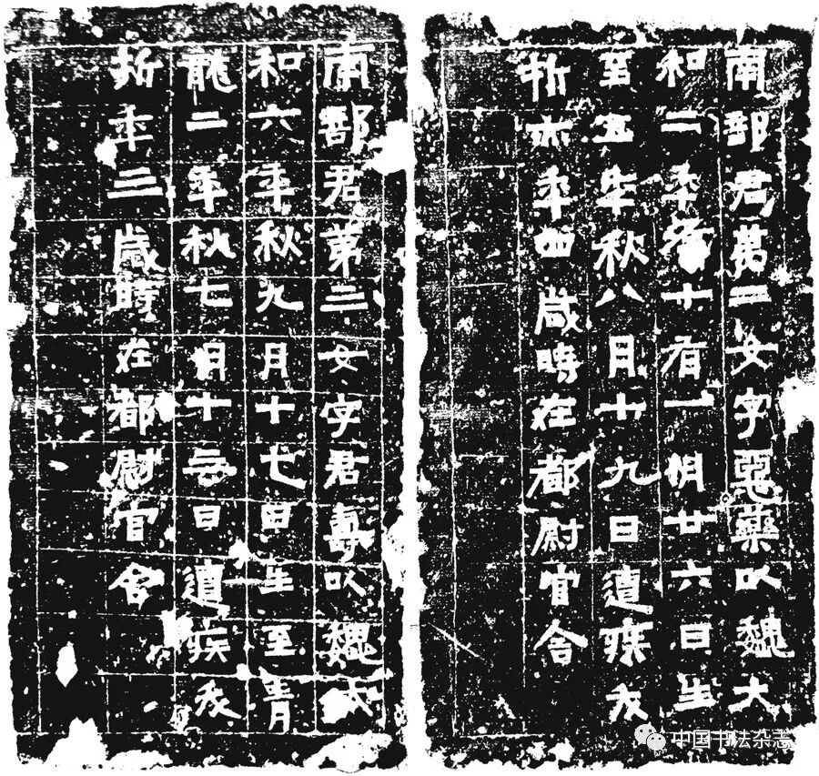 由墓誌的信息,誌主“南部君”姓氏未知,名陵,字子皐,天水冀人,秦漢天水冀縣即今甘肅甘穀縣。誌文簡要記敘南部君生卒年月日,祖、父兩代數人主要履曆,南部君三女生卒時間、地點等。但最重要的信息——南部君的生平和任職簡況文字部分似被刮鏟掉了(第二磚),隻餘“君在官,惠愛公平,吏民稱述”等褒揚辭,文字何時何原因被鏟去不得而知。從現存文字看,南部君在曹魏太和三年他二十七歲時全家居京師洛陽;其第二女惡藥夭折時、即太和五年南部君二十九歲時,他已放外任,舉家在都尉官舍,此時他已任某郡(部)都尉;第三女夭折時(魏青龍二年),南部君三十二歲仍在都尉任,並很可能死於都尉任上。漢製地方設郡、縣,郡級長官為太守、都尉,《漢書·百官公卿表》:“郡尉,秦官,掌佐守典武職甲卒,秩比二千石。有丞,秩皆六百石。景帝中二年更名都尉。”都尉與太守分治郡之軍民事,都尉位略次太守。漢代內地每郡隻設一個都尉,邊郡分置部都尉(如東部、中部、西部、南部、北部都尉)。“南部君”到底任職何地的“南部都尉”,因誌文不存無法知曉。從以上信息至少可知,南部君某陵出身仕宦之家,至少三世(含其本人)數人都做到太守、都尉等職,其本人去世前至少任都尉八年以上。其死後墓誌並未用規範隸書,而用了這種方筆隸書、也即後來“東晉銘石體”一路刻法。東漢末、曹魏時期國家實行禁碑令,《宋書·禮誌二》提到禁碑始於魏武帝曹操:“建安十年,魏武帝以天下凋敝,下令不得厚葬,又禁立碑。”除朝廷特許外,不得立私碑,顯門仕宦及其他階層人們不得已由製碑轉向墓誌。漢末以上單設石磚質墓誌較少,此時尚無設製墓誌的禮俗,隻有偶爾為之,東漢建安後期至曹魏西晉應是墓誌發軔時期,曹魏早期的《曹魏南部君墓誌》即是其代表,隻是目今還未有大量發現。同為曹魏時期的《張普墓磚銘》(260)、《曹植墓磚銘》(233)、《正始九年造作磚》(248)及其他一些磚刻銘中,有的即屬墓誌之類,它們中有的銘文工整,有的則極草率,從刻法看陽文為多,從字體看以隸體為主,有不少是方筆隸體,但就與“東晉銘石體”相近程度而言,均不及《曹魏南部君墓誌》典型。從目前所見實物看,曹魏時期墓誌禮儀開始形成,但用材、製作、書刻等方麵還顯得粗糙、欠精致,用體上規範類刻文仍以隸體為本,也有從其中分化出的更加方平、簡捷的程式化隸體,即“東晉銘石體”前身。《曹魏南部君墓誌》就是這類作品的代表,它們表明這種銘刻用體在當時越來越受青睞,其觀念與技術延用、被帶至東晉江左。