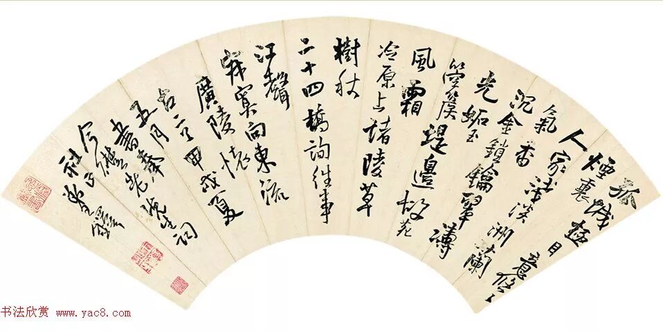 王鐸書法扇麵八幀,大體在1634年前後陸續寫成,均贈送給好友宋之普。